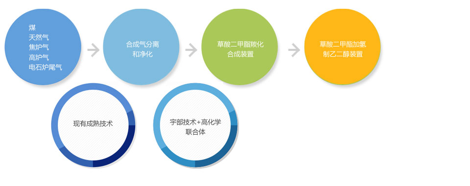 高化學(xué)集團(tuán)(HighChem)在宇部興產(chǎn)的技術(shù)支持下,聯(lián)合東華工程科技有限公司(ECEC)、浙江聯(lián)盛化學(xué)工業(yè)公司進(jìn)行了草酸二甲脂加氫制乙二醇工藝技術(shù)的開發(fā),同時(shí)建立了中試基地,編制完善了合成氣制乙二醇的工藝包,并在中國(guó)進(jìn)行推廣。世界首套SEG®技術(shù)裝置于2013年1月初在中國(guó)新疆一次開車成功。